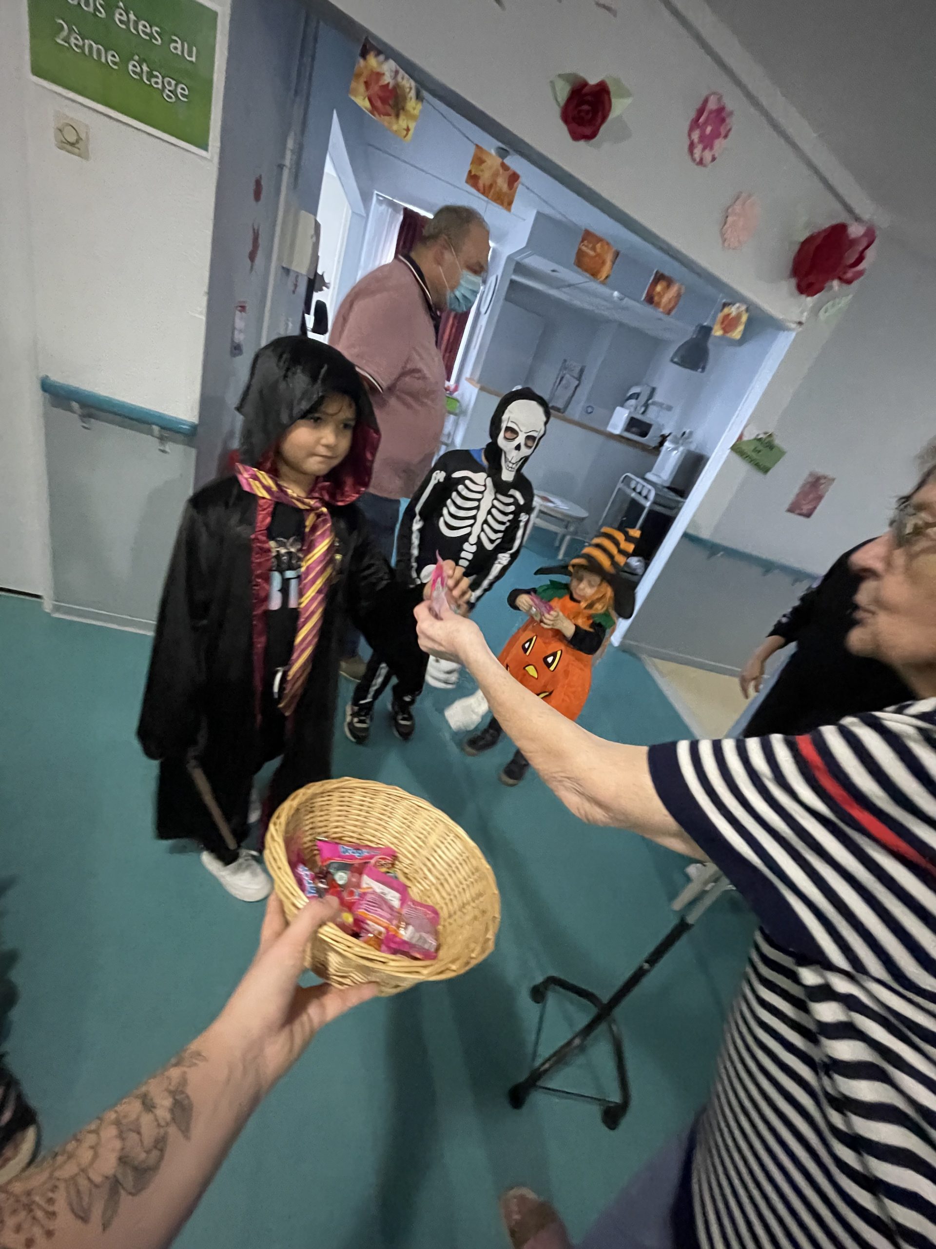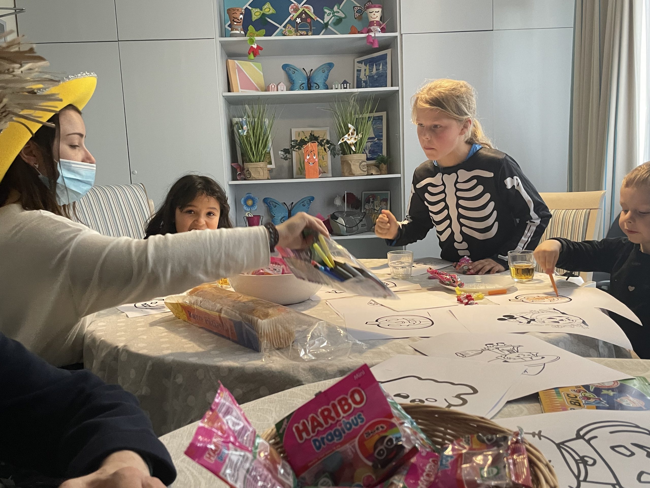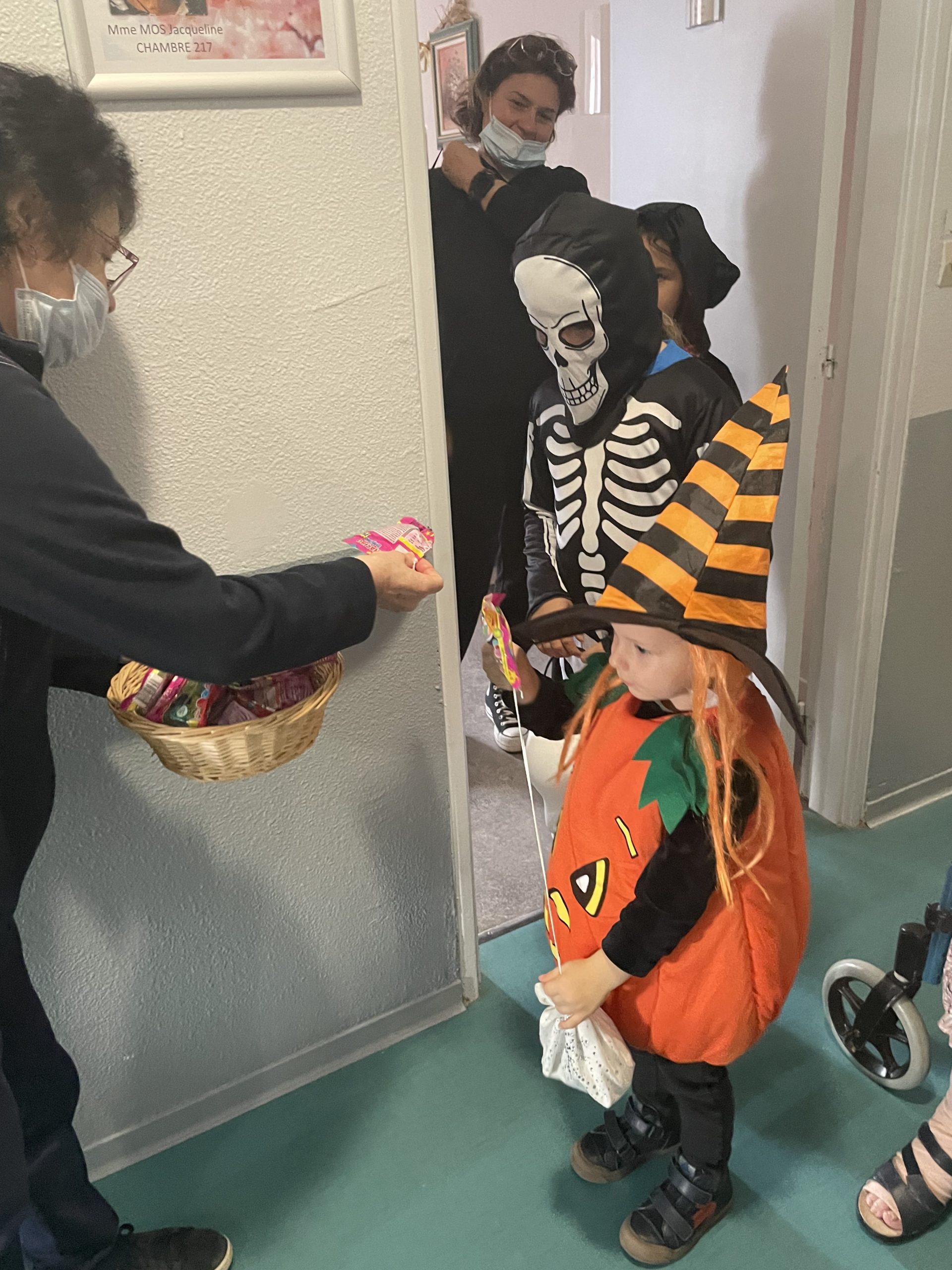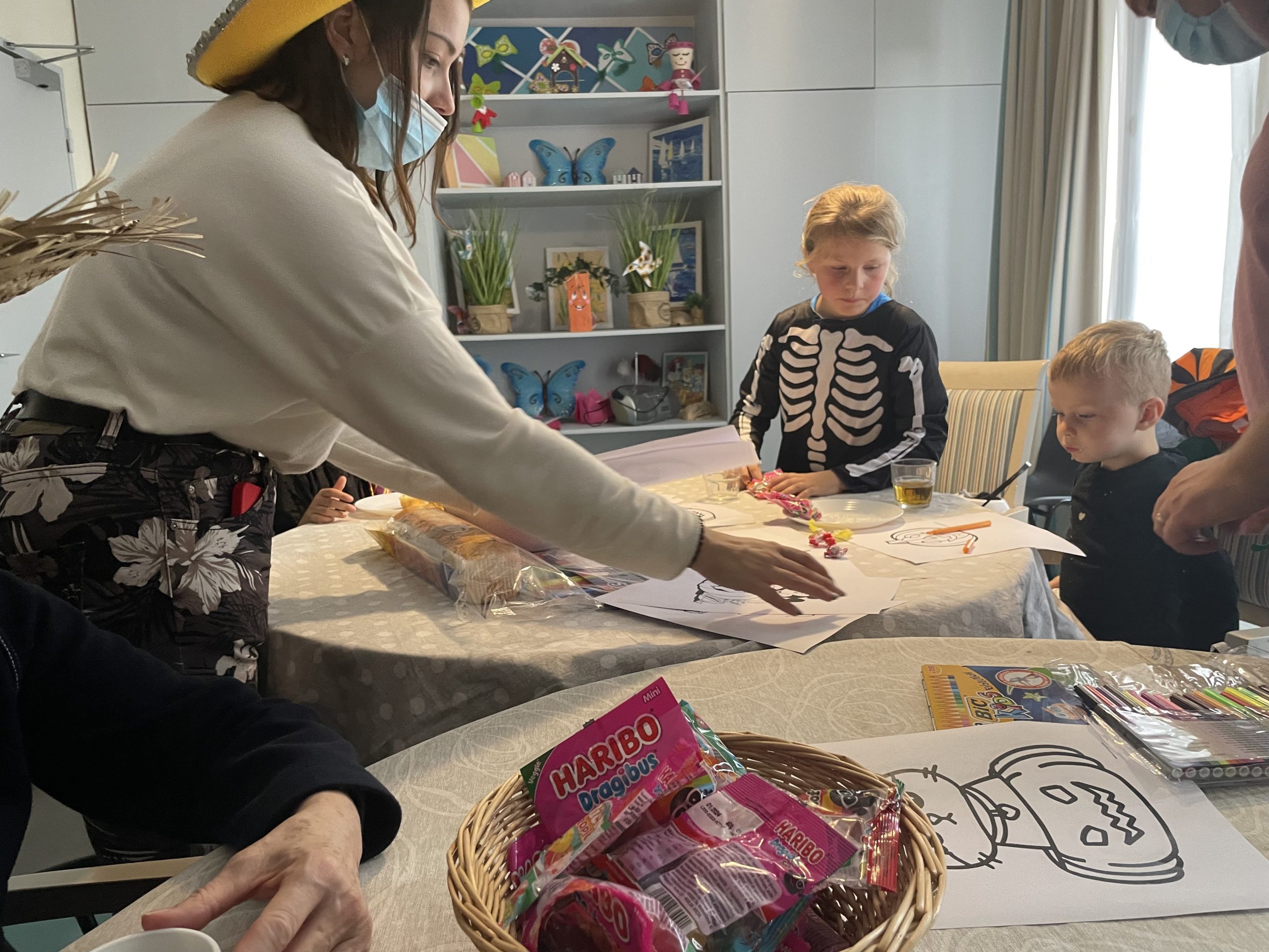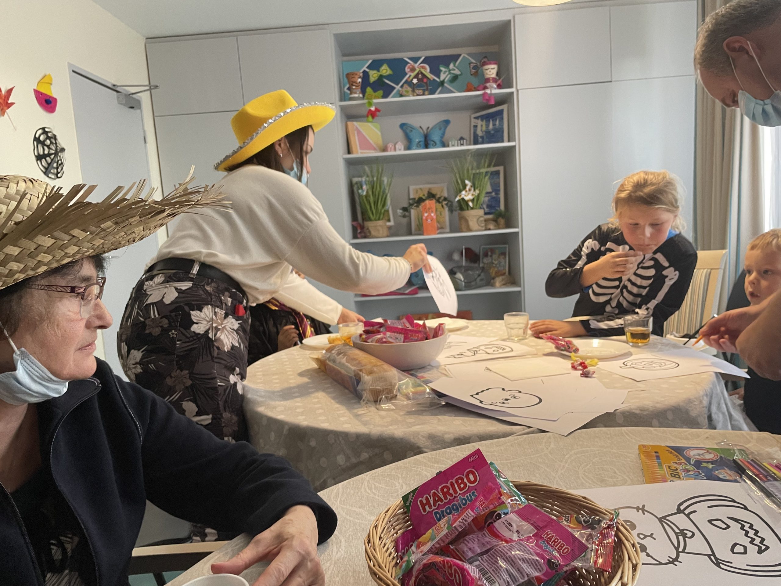 Aujourd’hui les enfants des salariés étaient conviés au sein de la résidence pour la fête d’halloween, l’occassion d’offrir et de se faire offrir des bonbons par les résidents ! Egalement un petit atelier coloriage d’halloween.