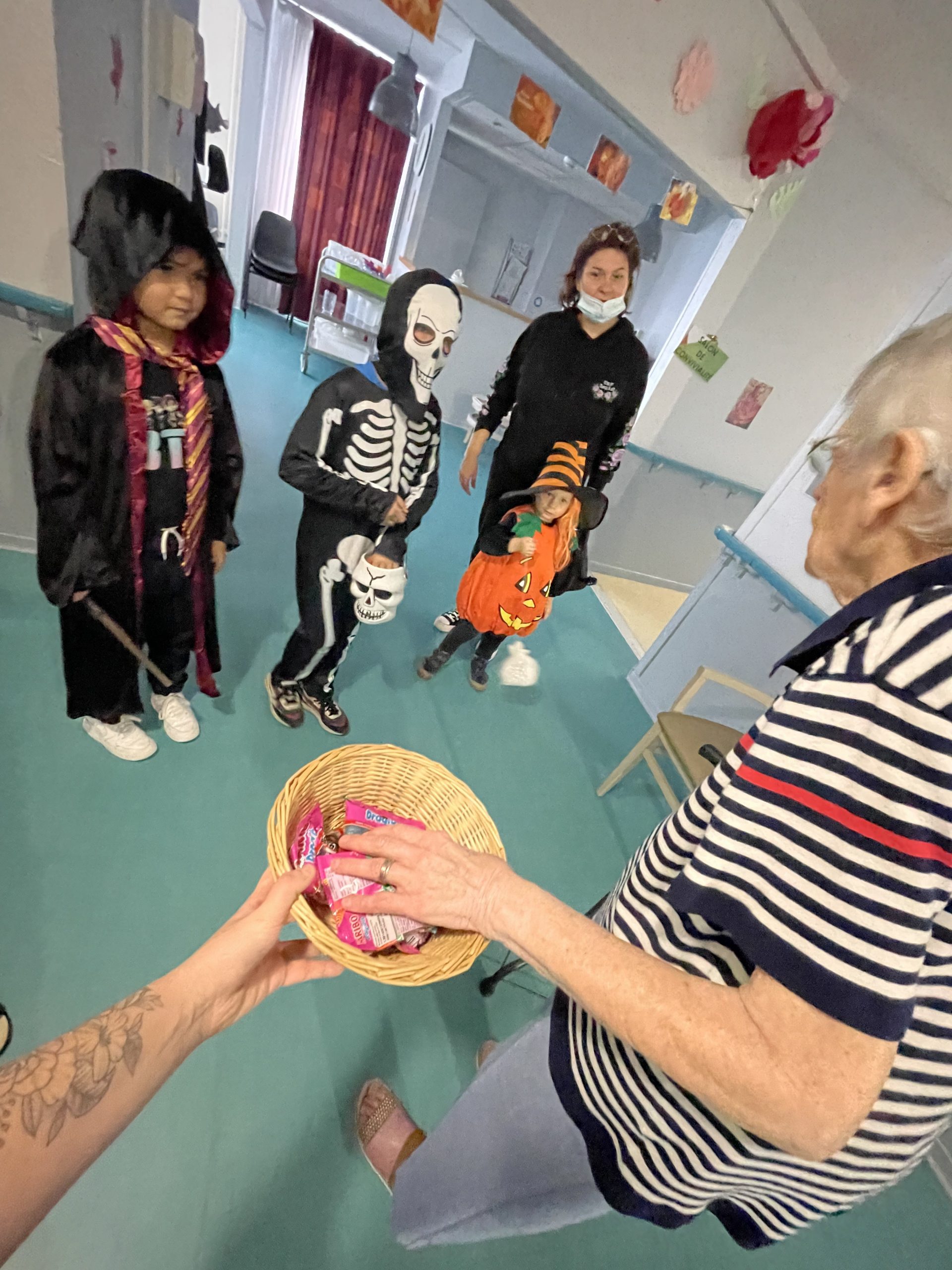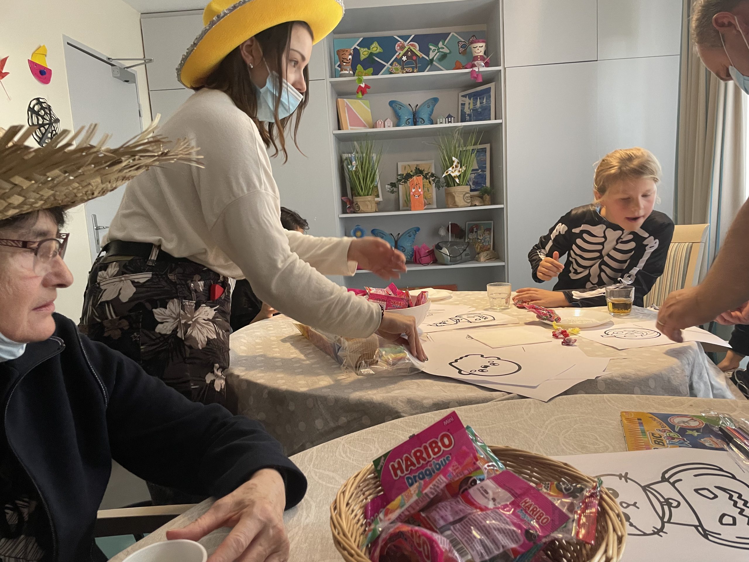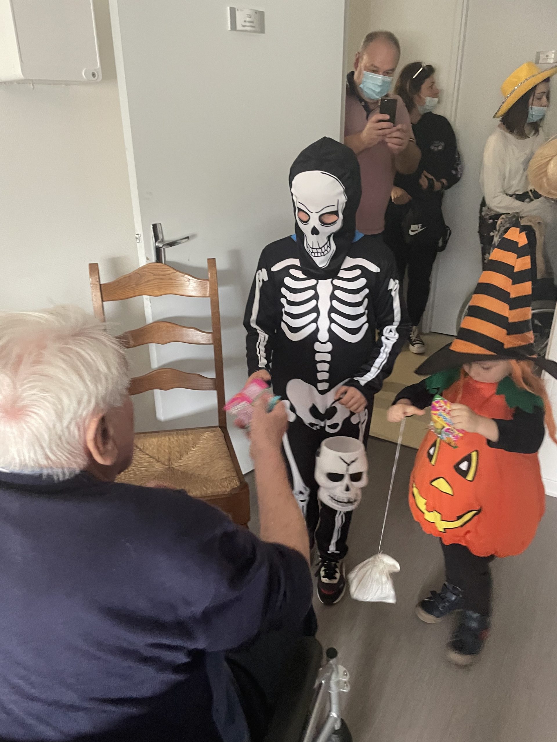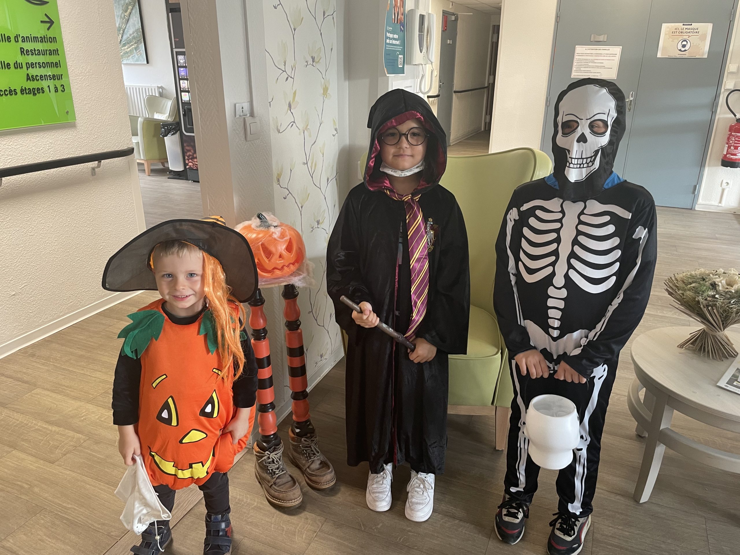 Aujourd’hui les enfants des salariés étaient conviés au sein de la résidence pour la fête d’halloween, l’occassion d’offrir et de se faire offrir des bonbons par les résidents ! Egalement un petit atelier coloriage d’halloween.