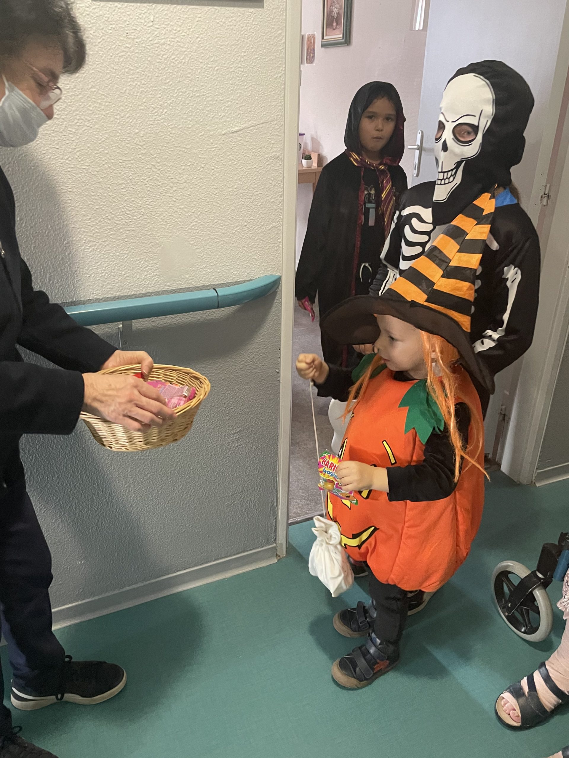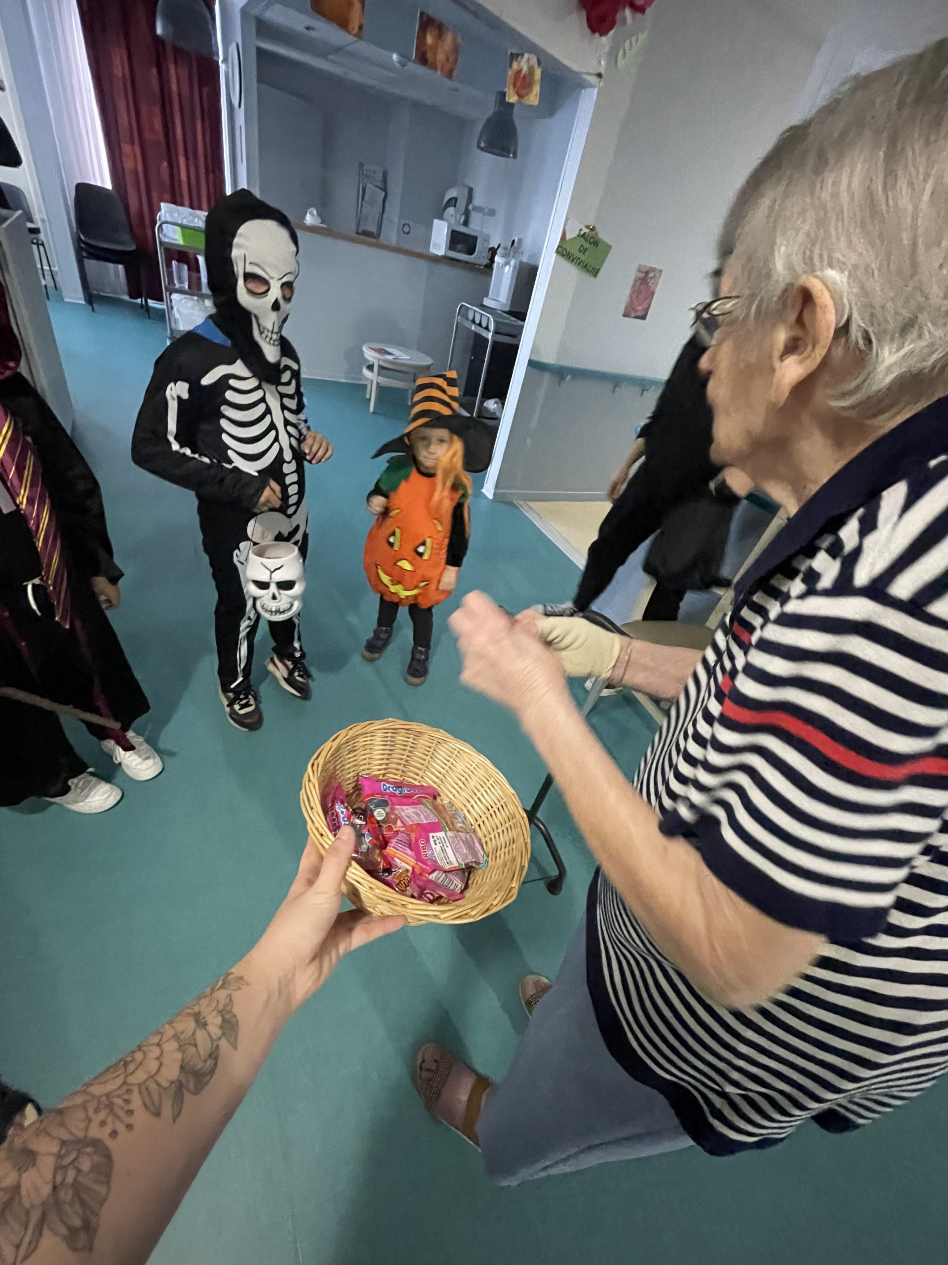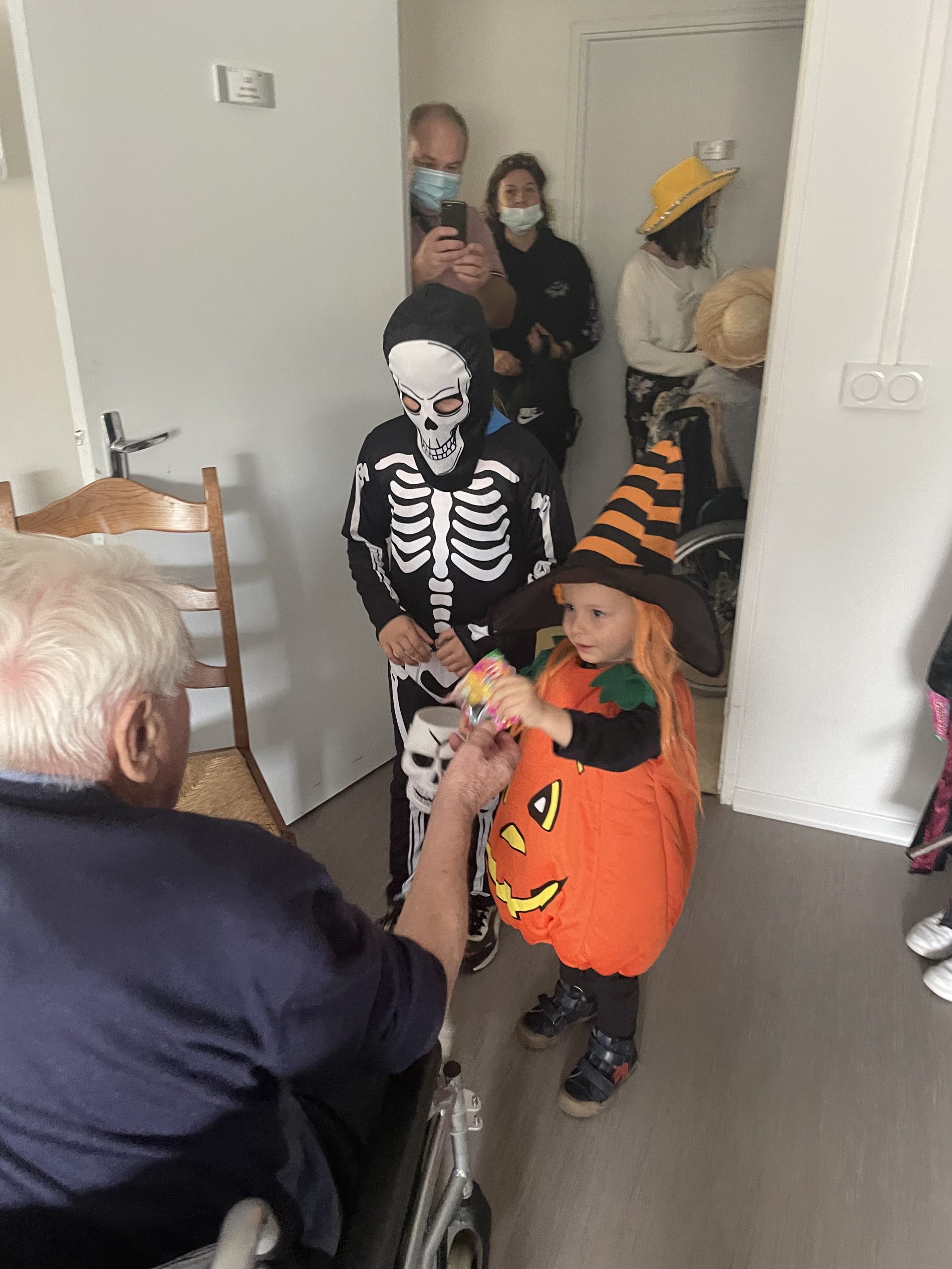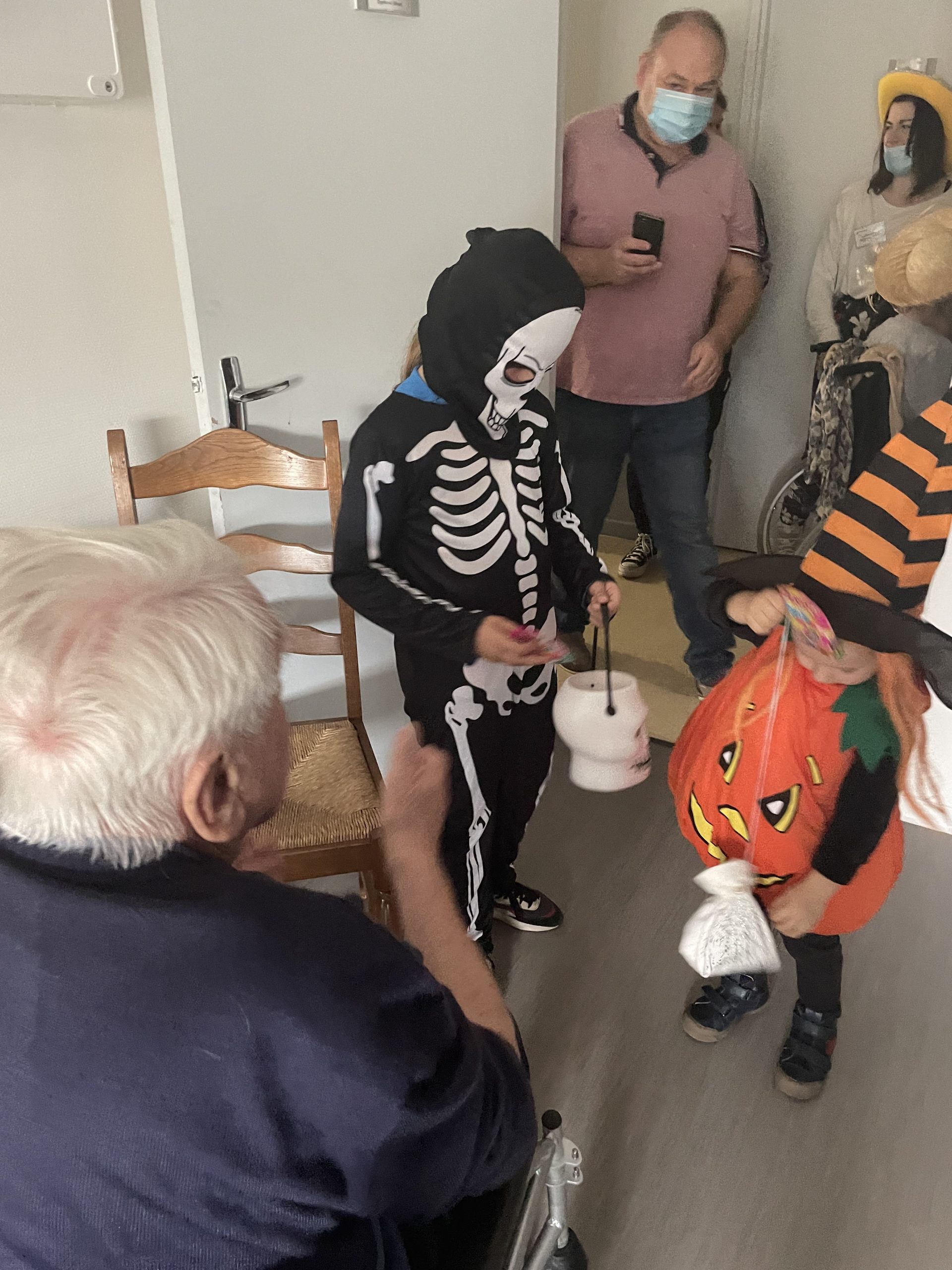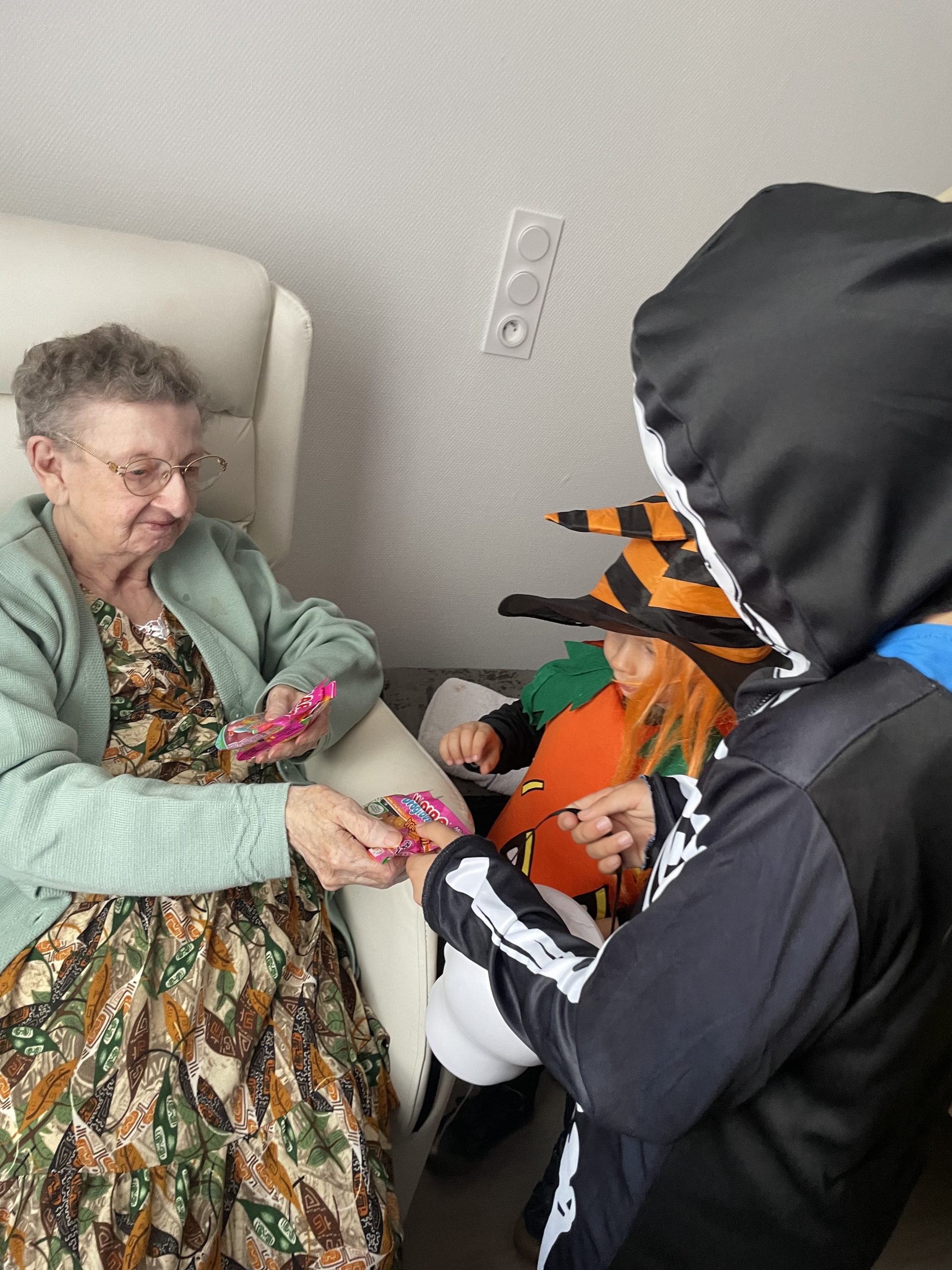 Aujourd’hui les enfants des salariés étaient conviés au sein de la résidence pour la fête d’halloween, l’occassion d’offrir et de se faire offrir des bonbons par les résidents ! Egalement un petit atelier coloriage d’halloween.