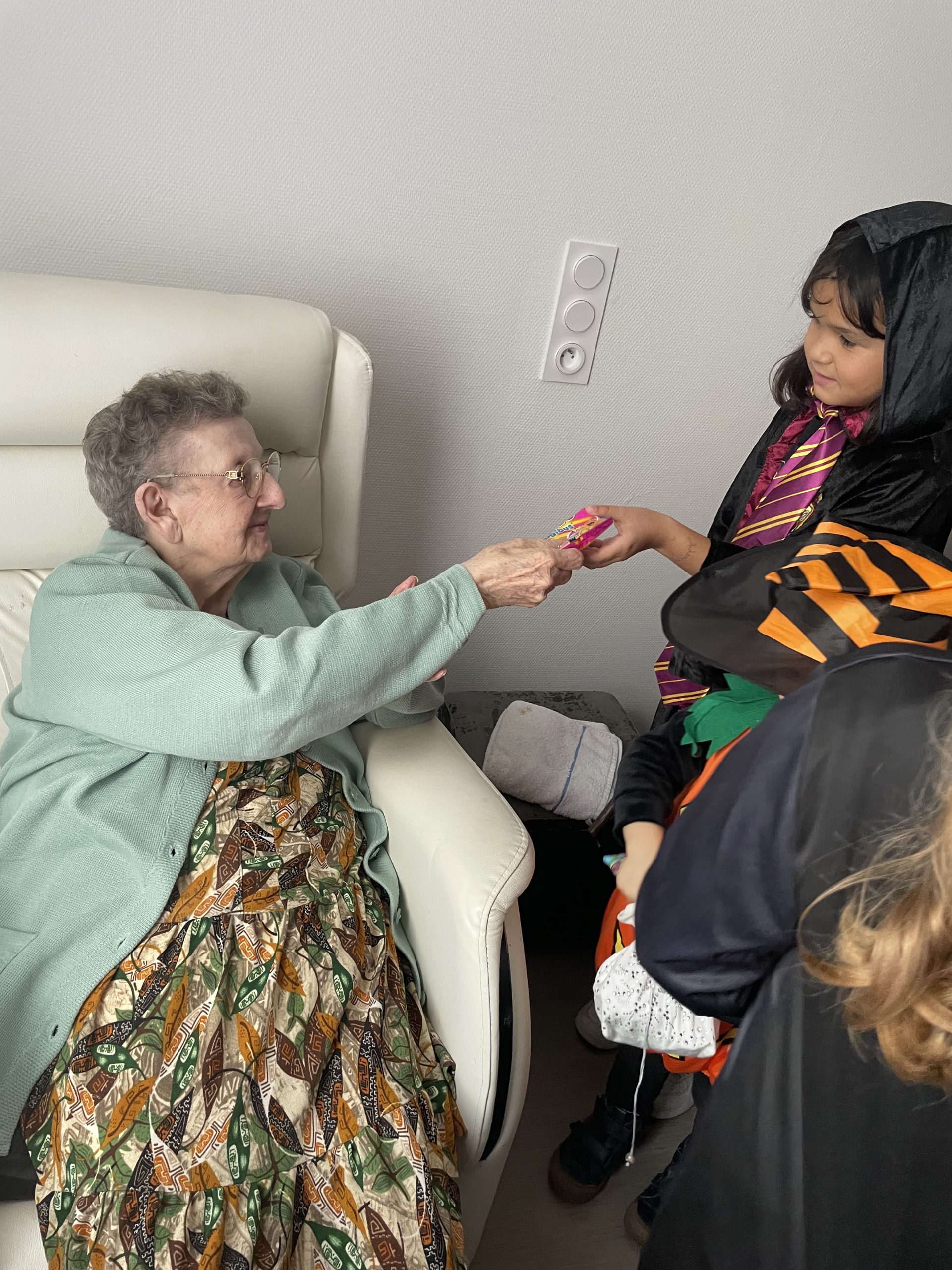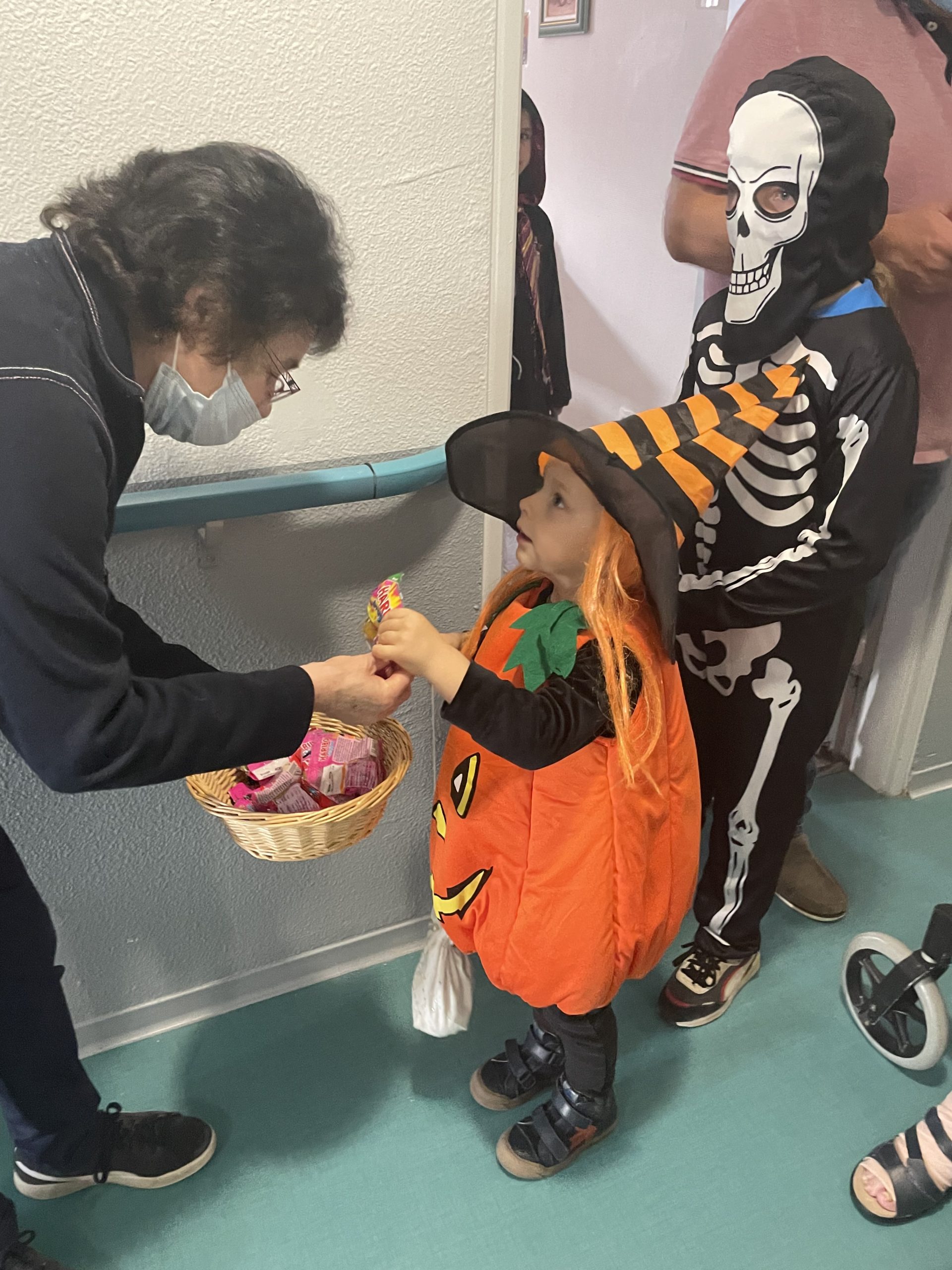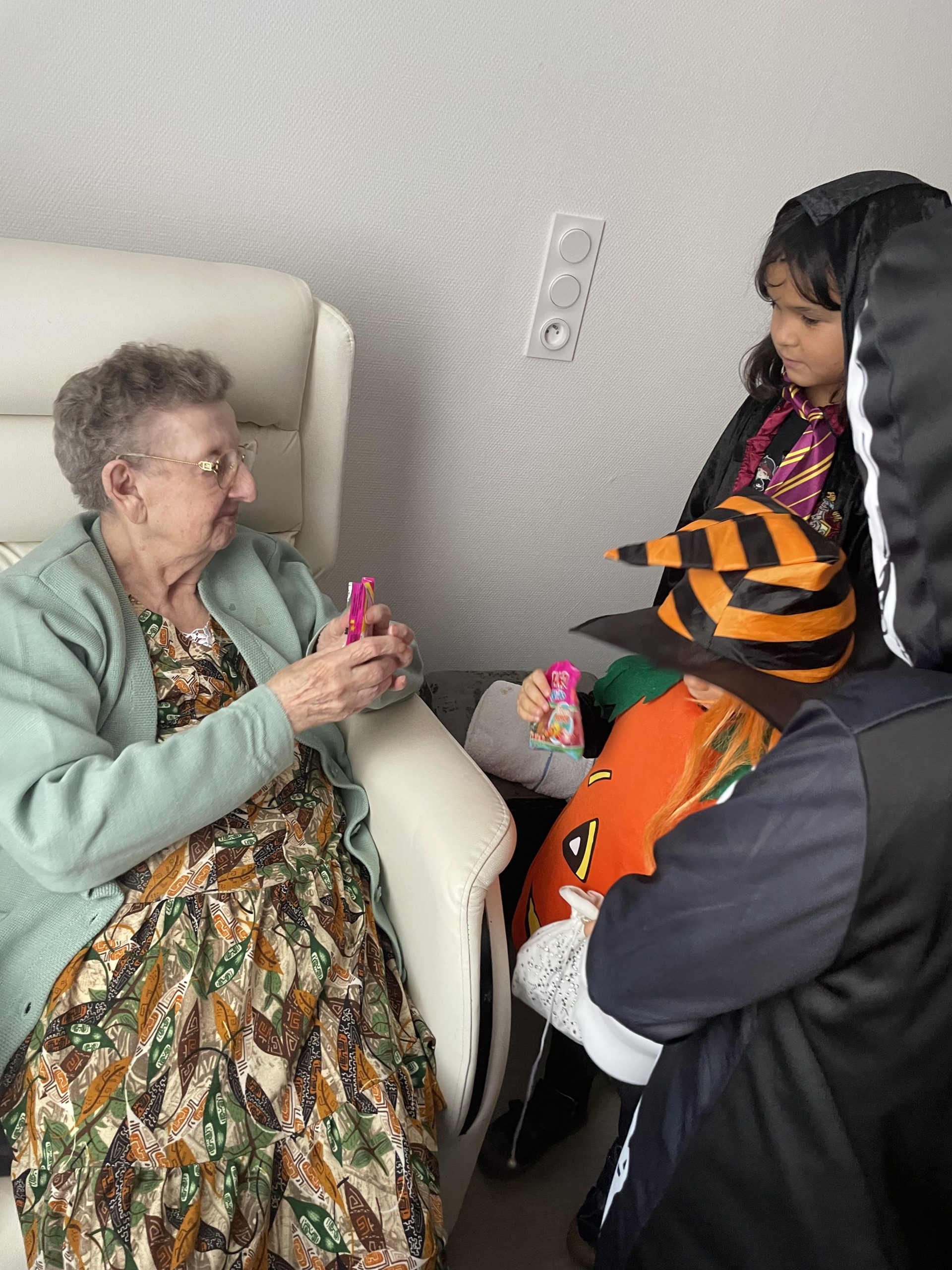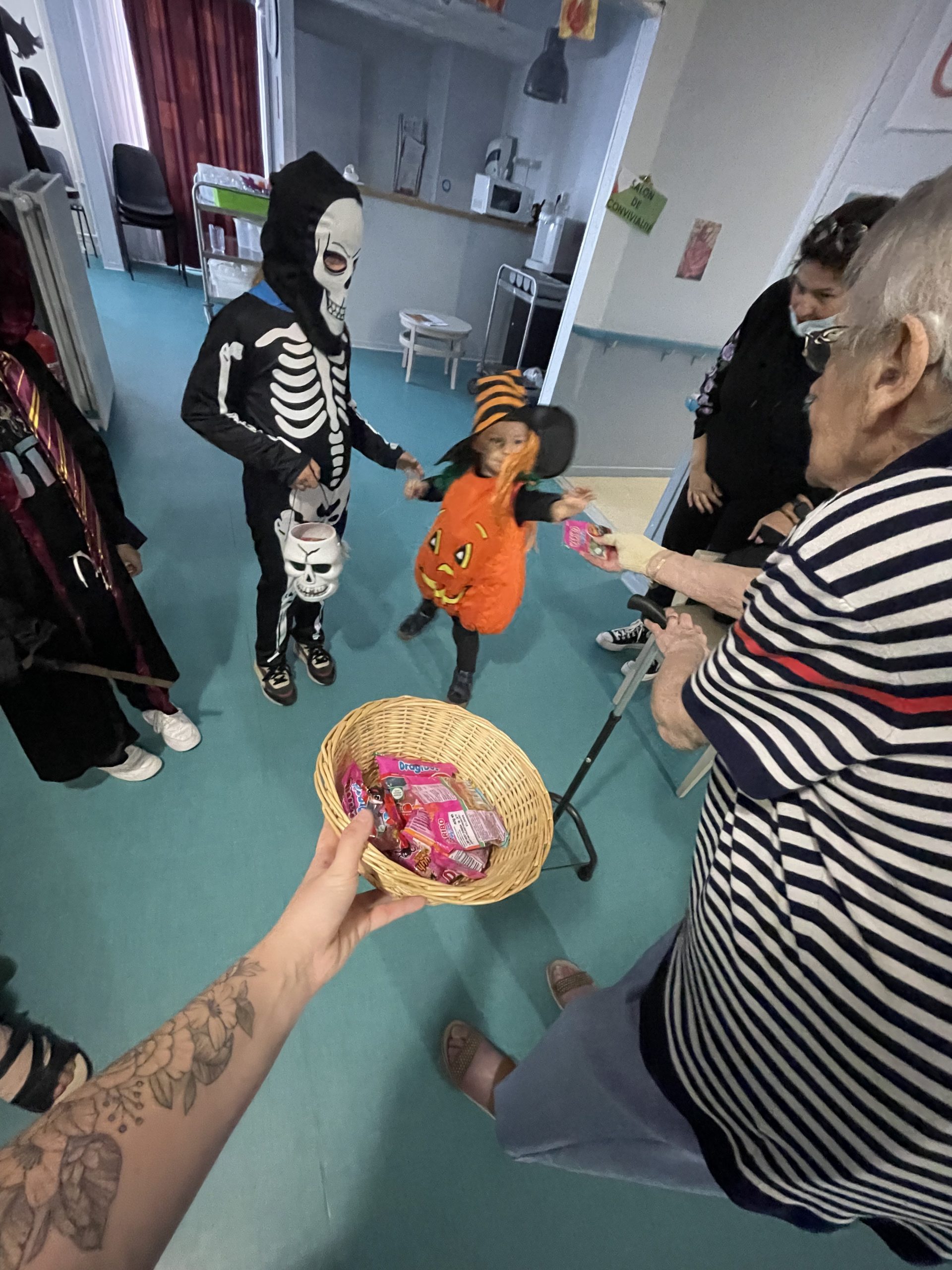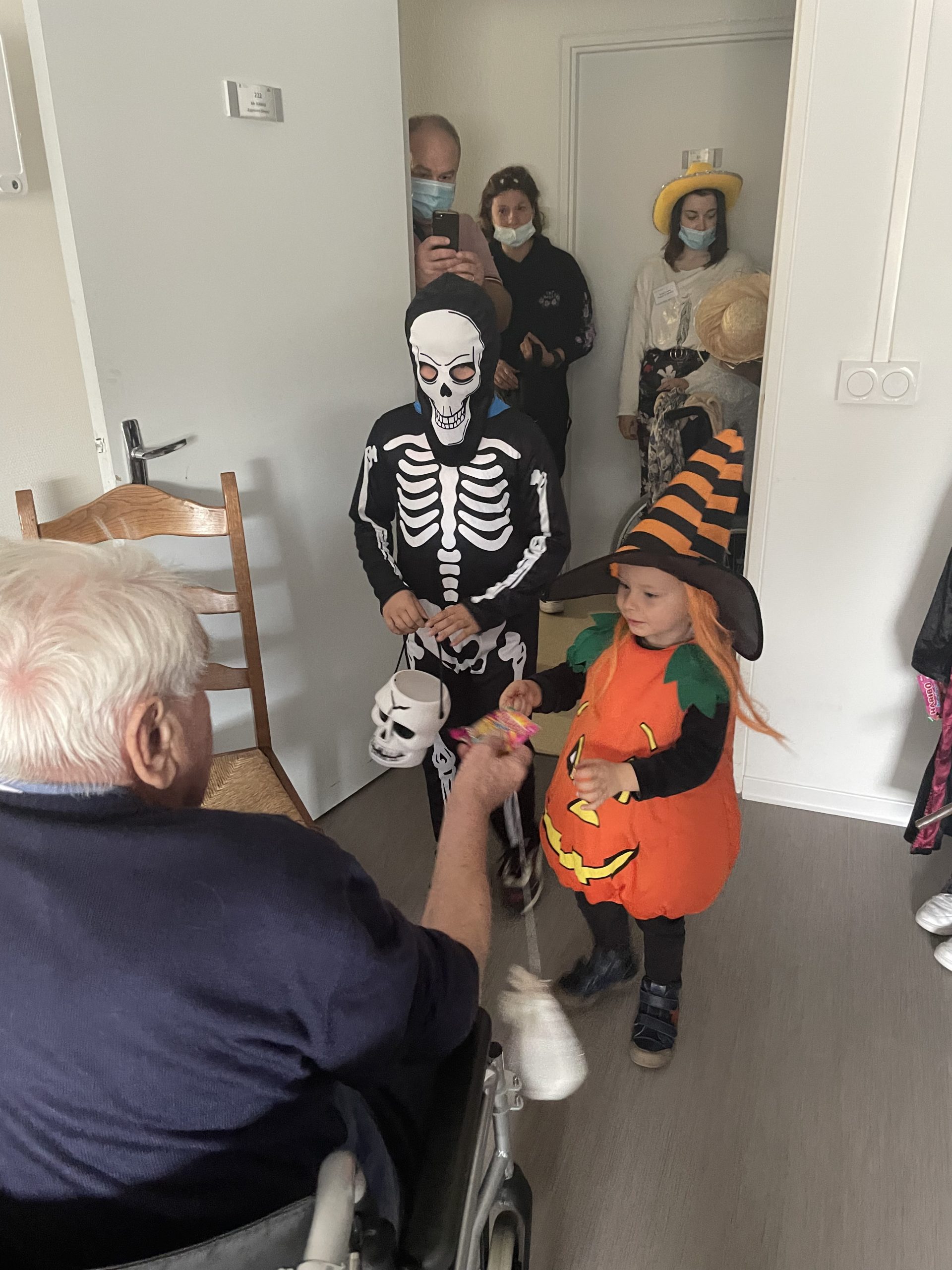 Aujourd’hui les enfants des salariés étaient conviés au sein de la résidence pour la fête d’halloween, l’occassion d’offrir et de se faire offrir des bonbons par les résidents ! Egalement un petit atelier coloriage d’halloween.