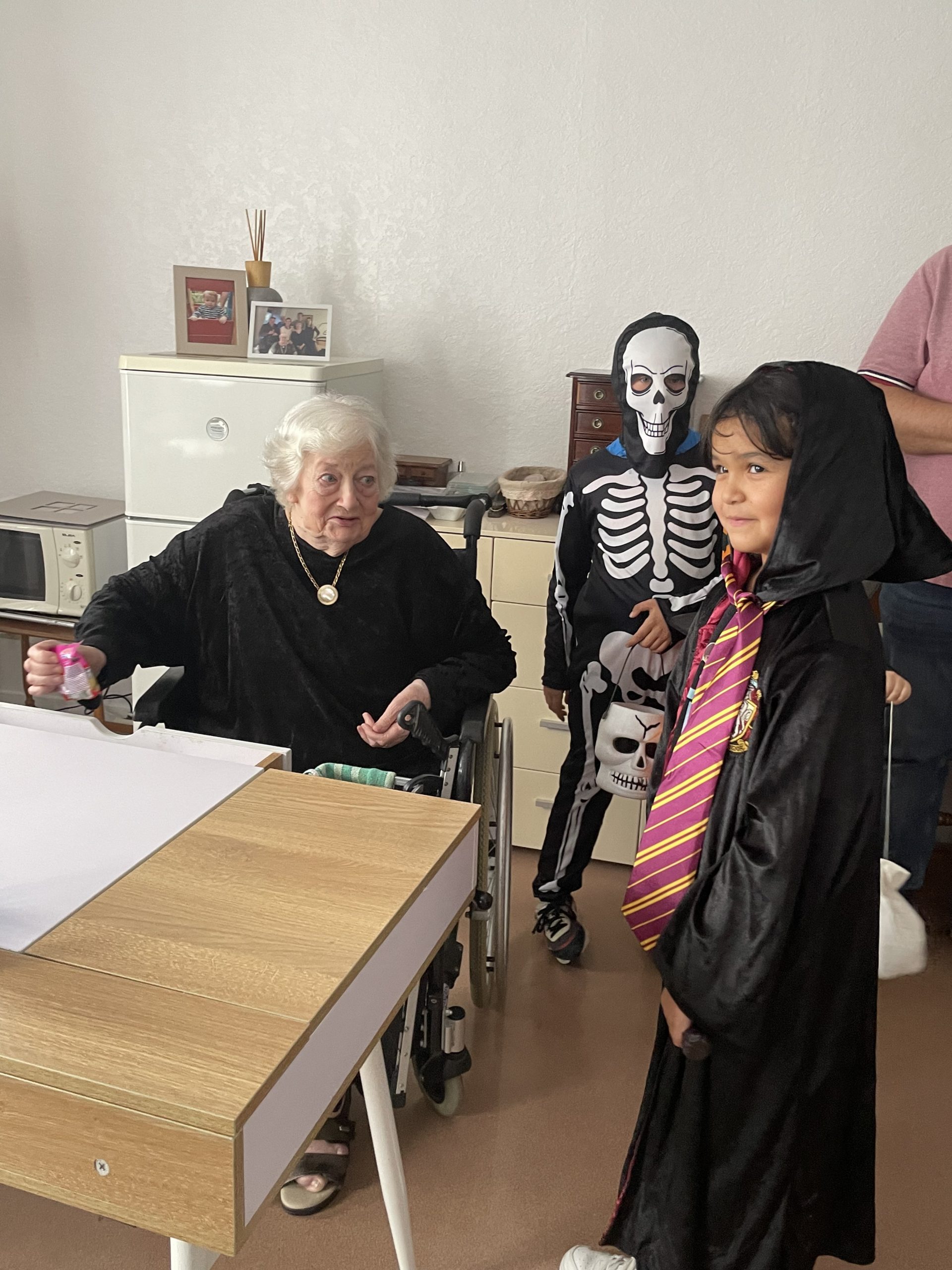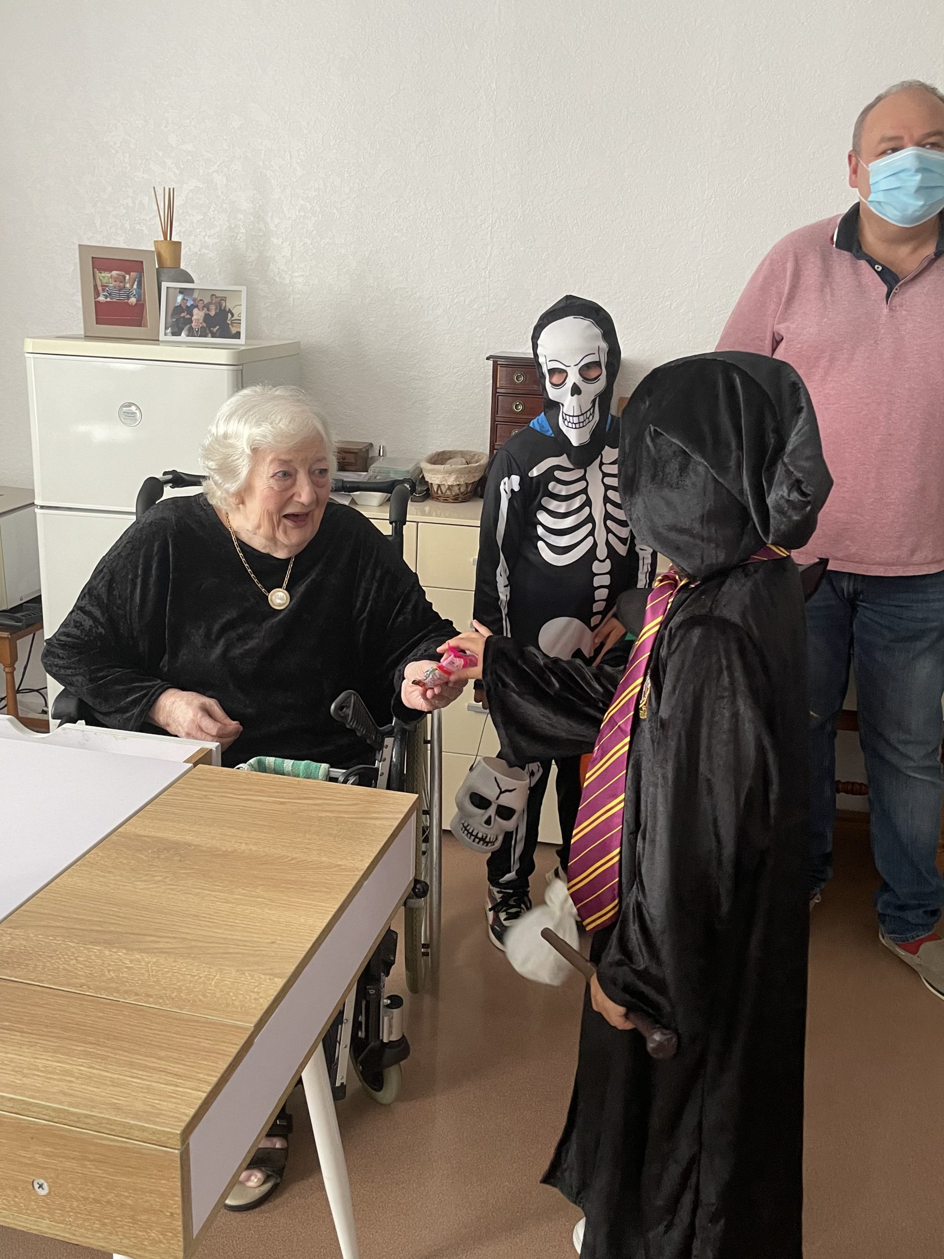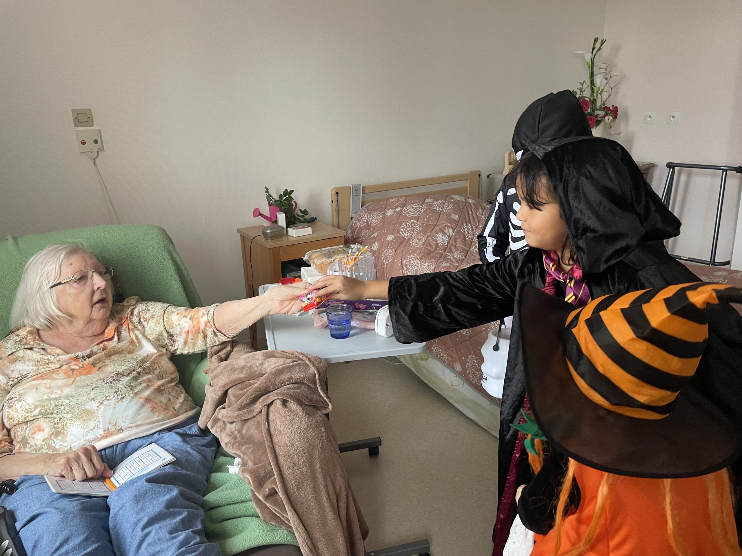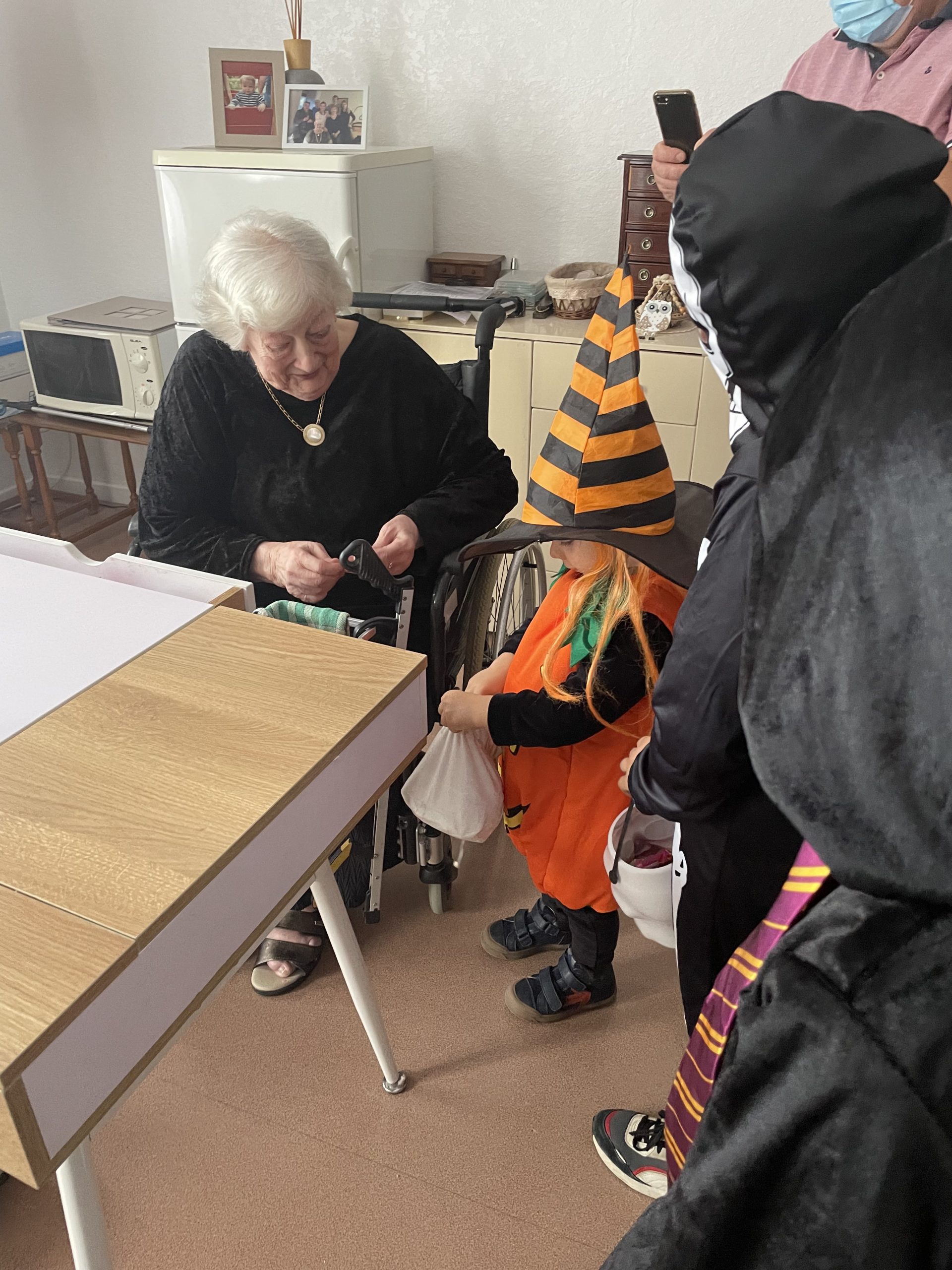 Aujourd’hui les enfants des salariés étaient conviés au sein de la résidence pour la fête d’halloween, l’occassion d’offrir et de se faire offrir des bonbons par les résidents ! Egalement un petit atelier coloriage d’halloween.