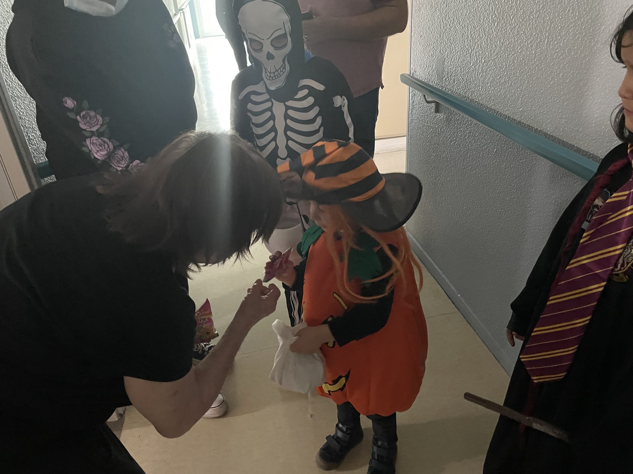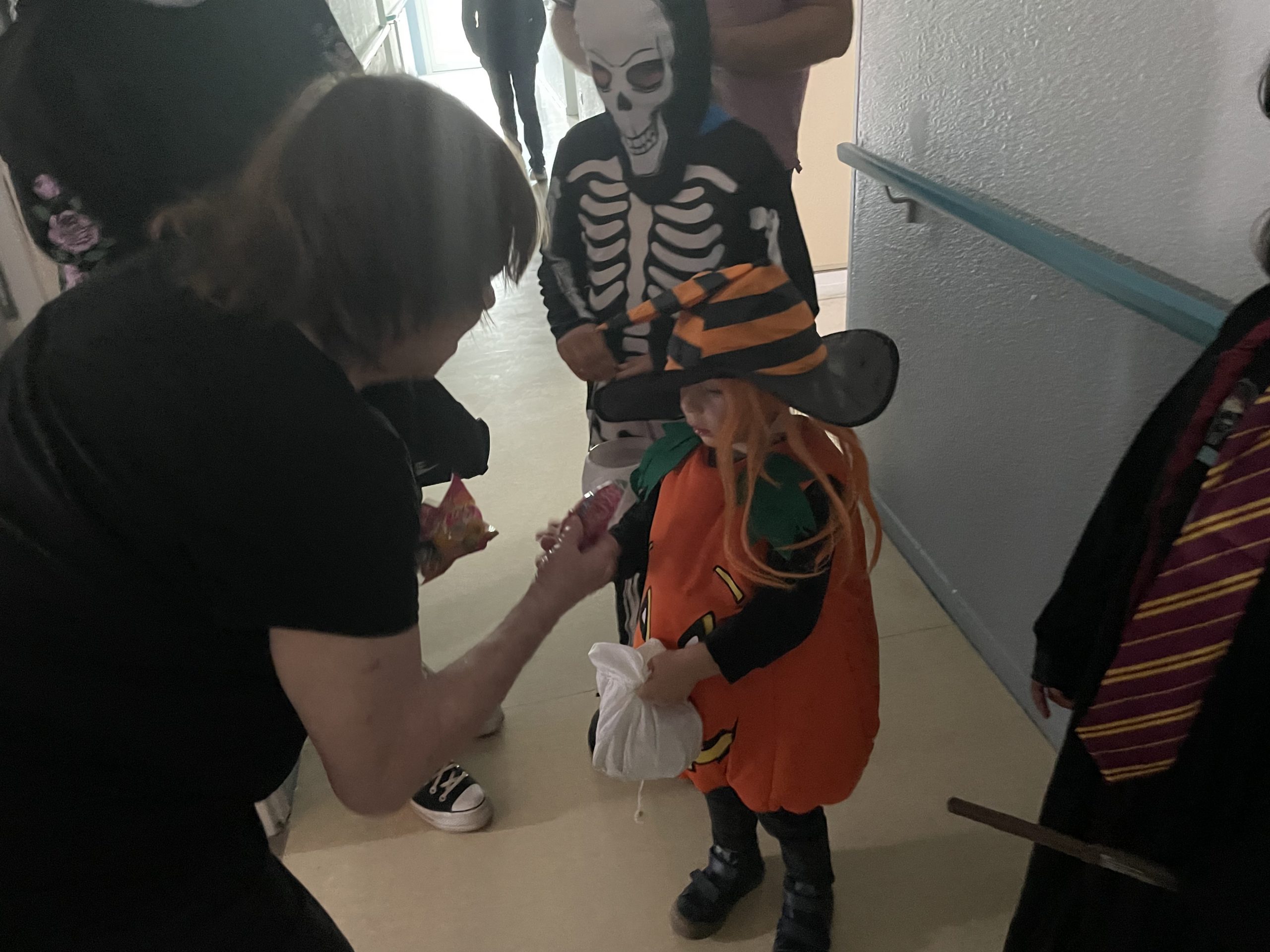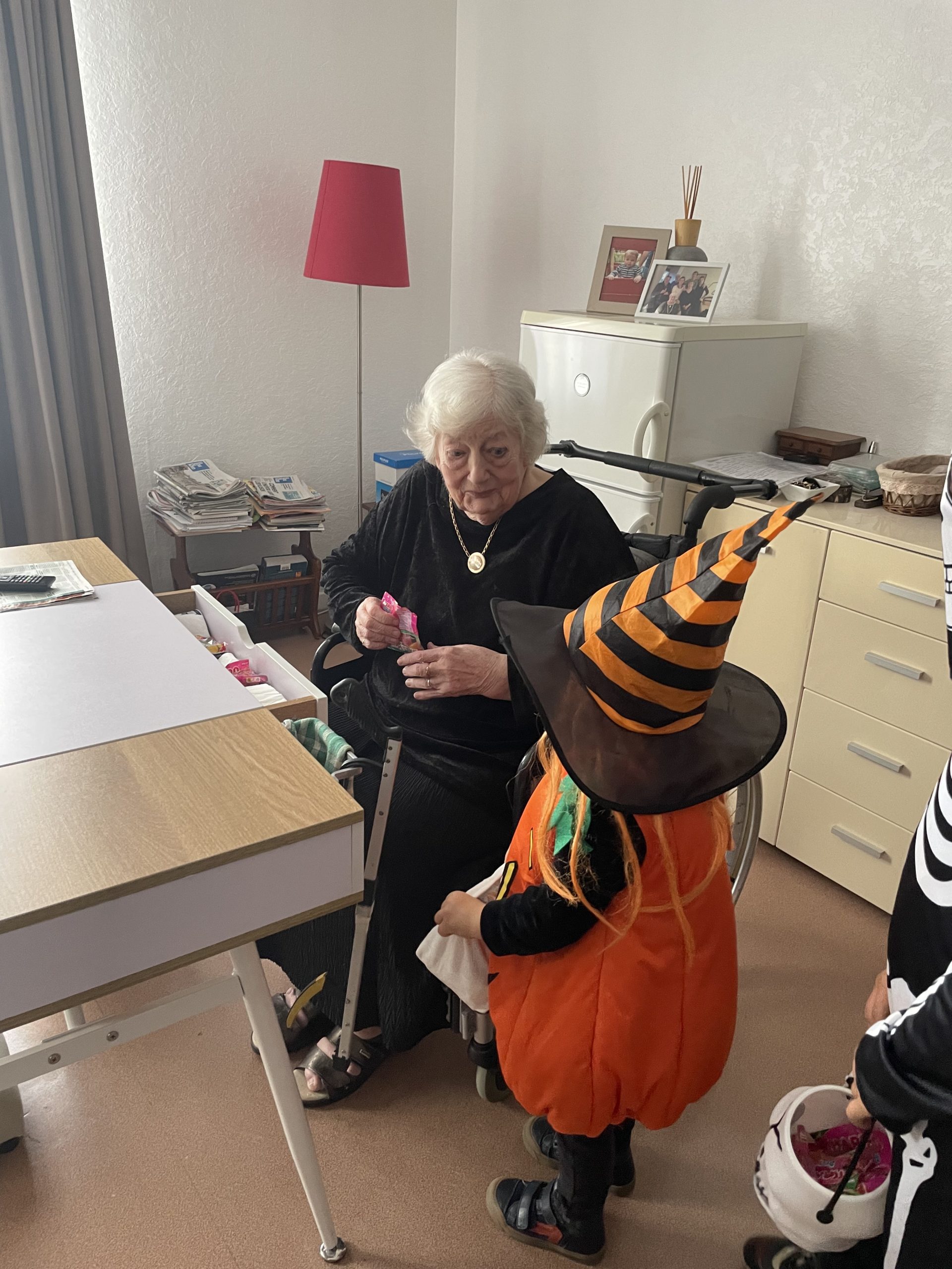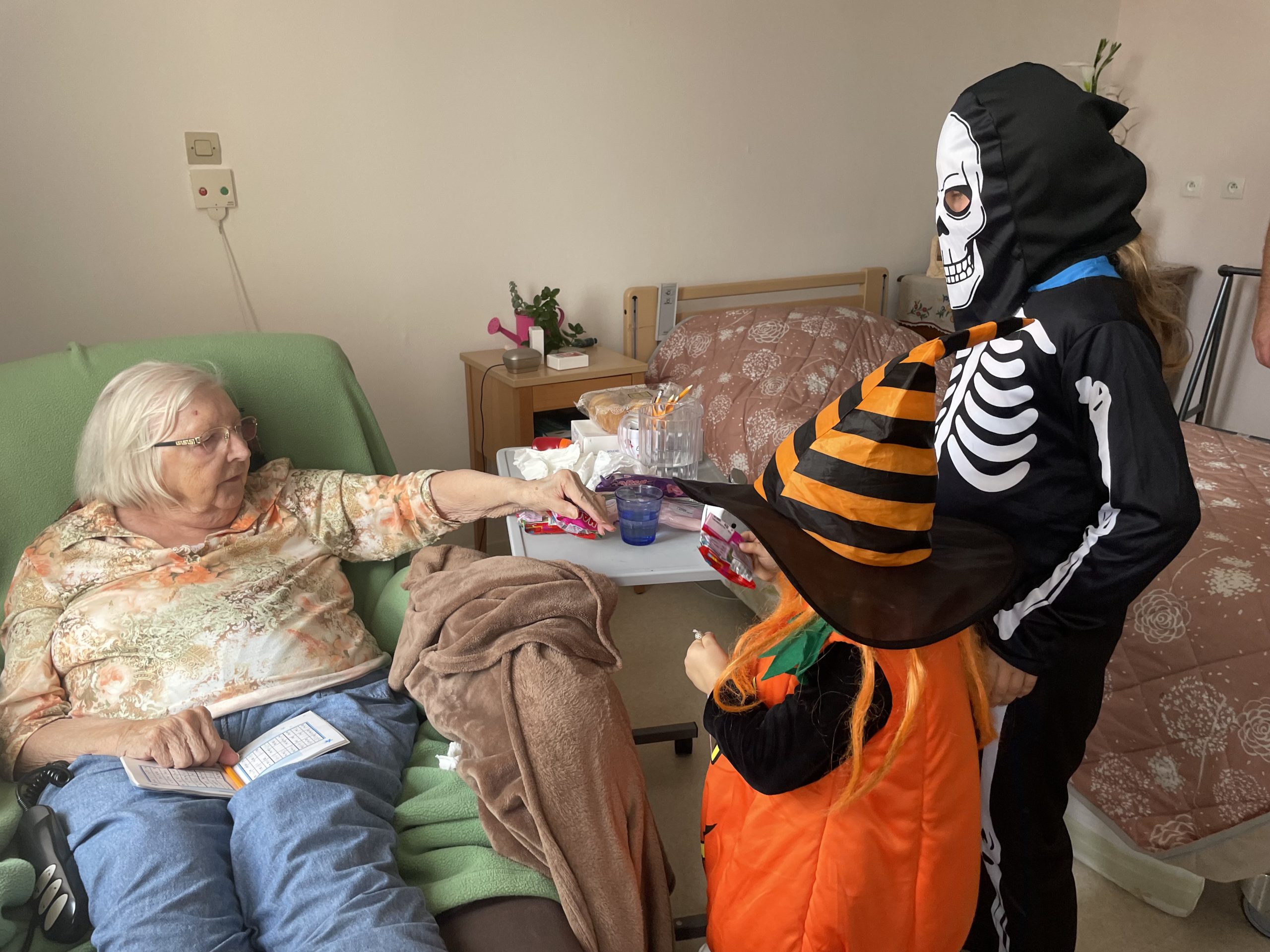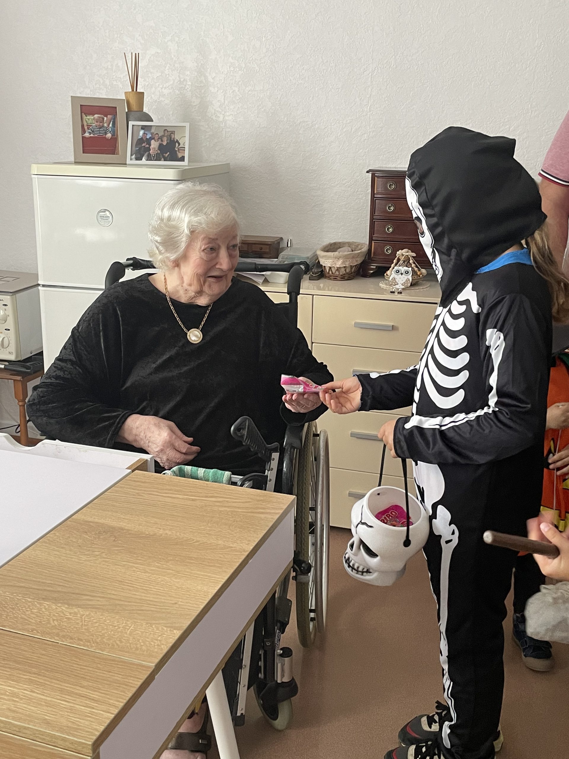 Aujourd’hui les enfants des salariés étaient conviés au sein de la résidence pour la fête d’halloween, l’occassion d’offrir et de se faire offrir des bonbons par les résidents ! Egalement un petit atelier coloriage d’halloween.